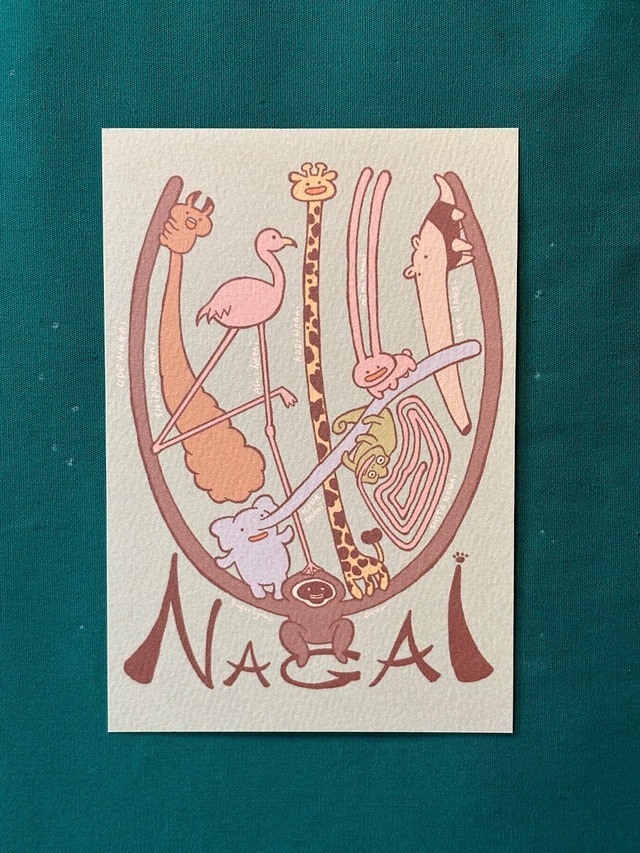 「NAGAi」(ポスカ) うでながいあしながいはなながいくびながいみみながいしたながいかおながい ハガキサイズ おうちプリント(インクジェット) ※水に弱いです