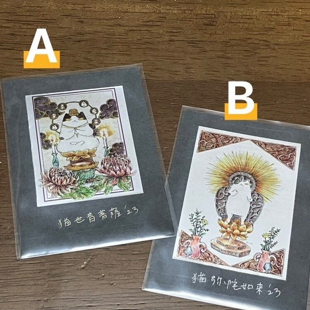 銀色ステッカー A猫世音菩薩'23 B猫弥陀如来'23 持っているだけで守られているようなありがたい気持ちになれるかもしれないマットシルバーのシール。 日光には弱いです。 水は避けたほうがベター。