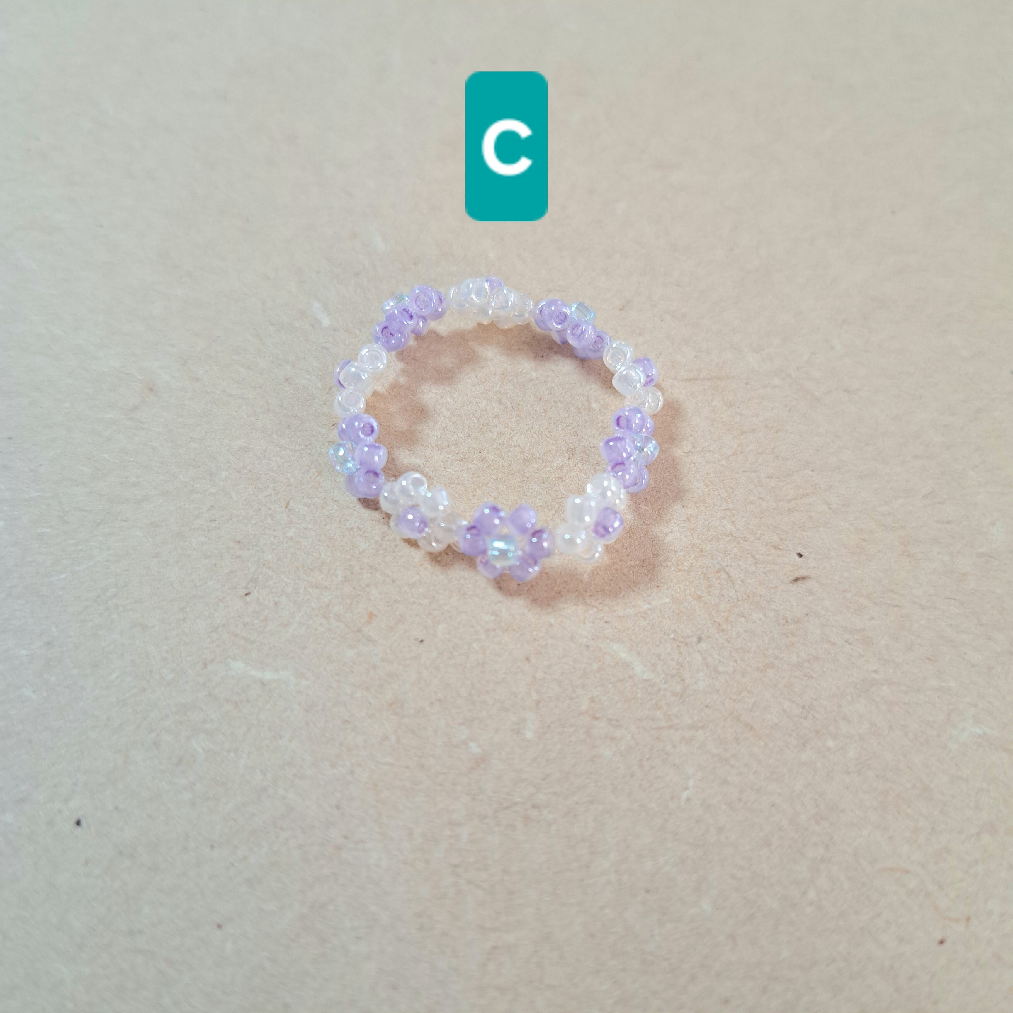 シンプルなお花デザインのなつかしビーズリングです.*・゚