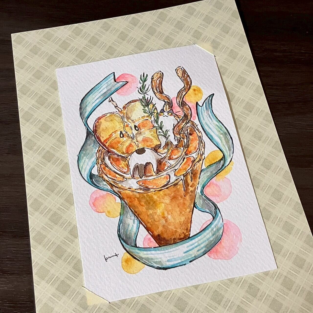 透明水彩、ミリペン、ボールペン、マーカー使用。
