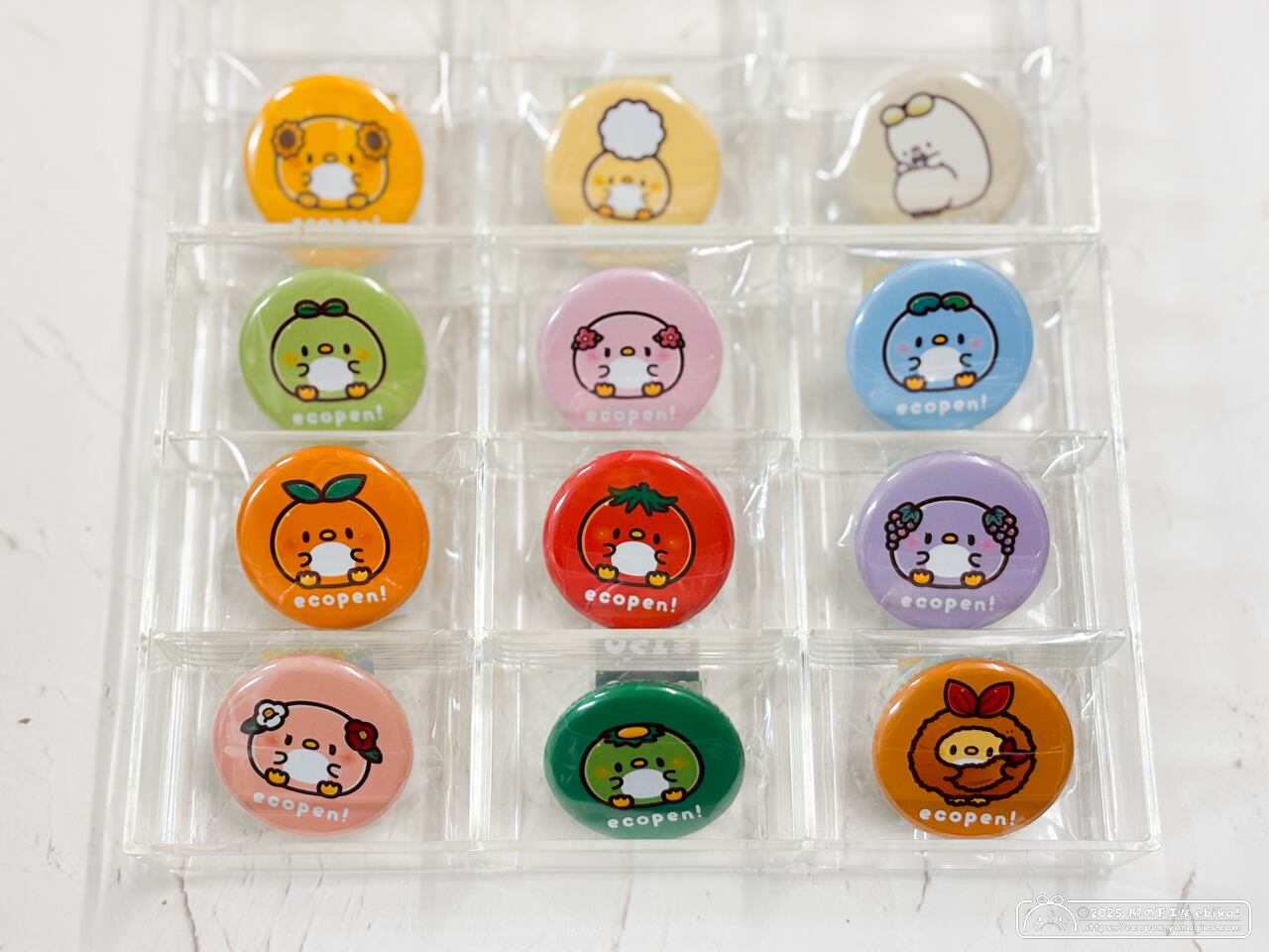 シンプルでカラフルなエコペン缶バッジです。
