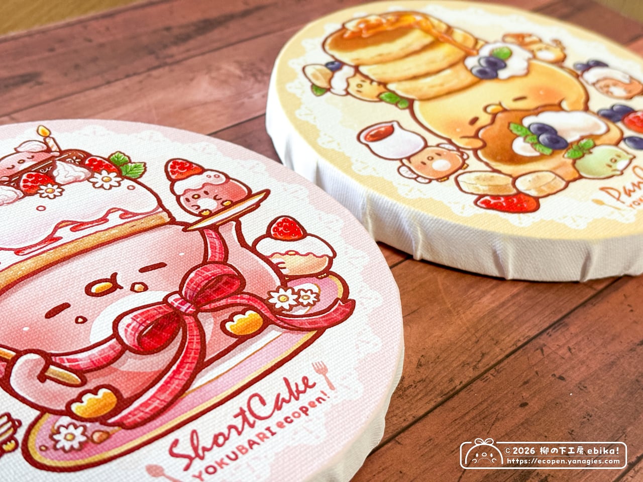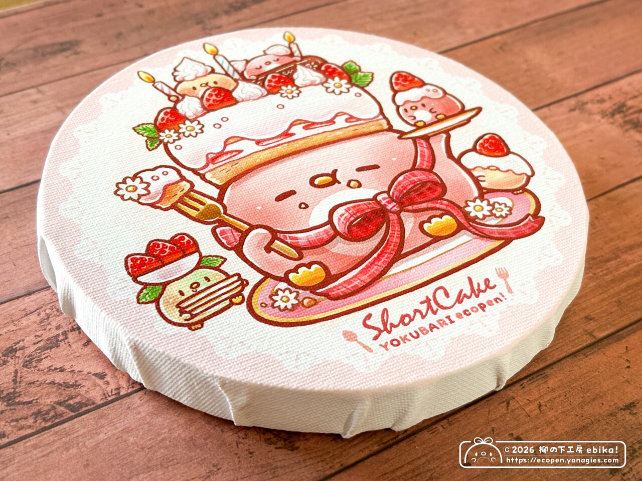 丸形のキャンバスに今回のメインイラストをプリントしました