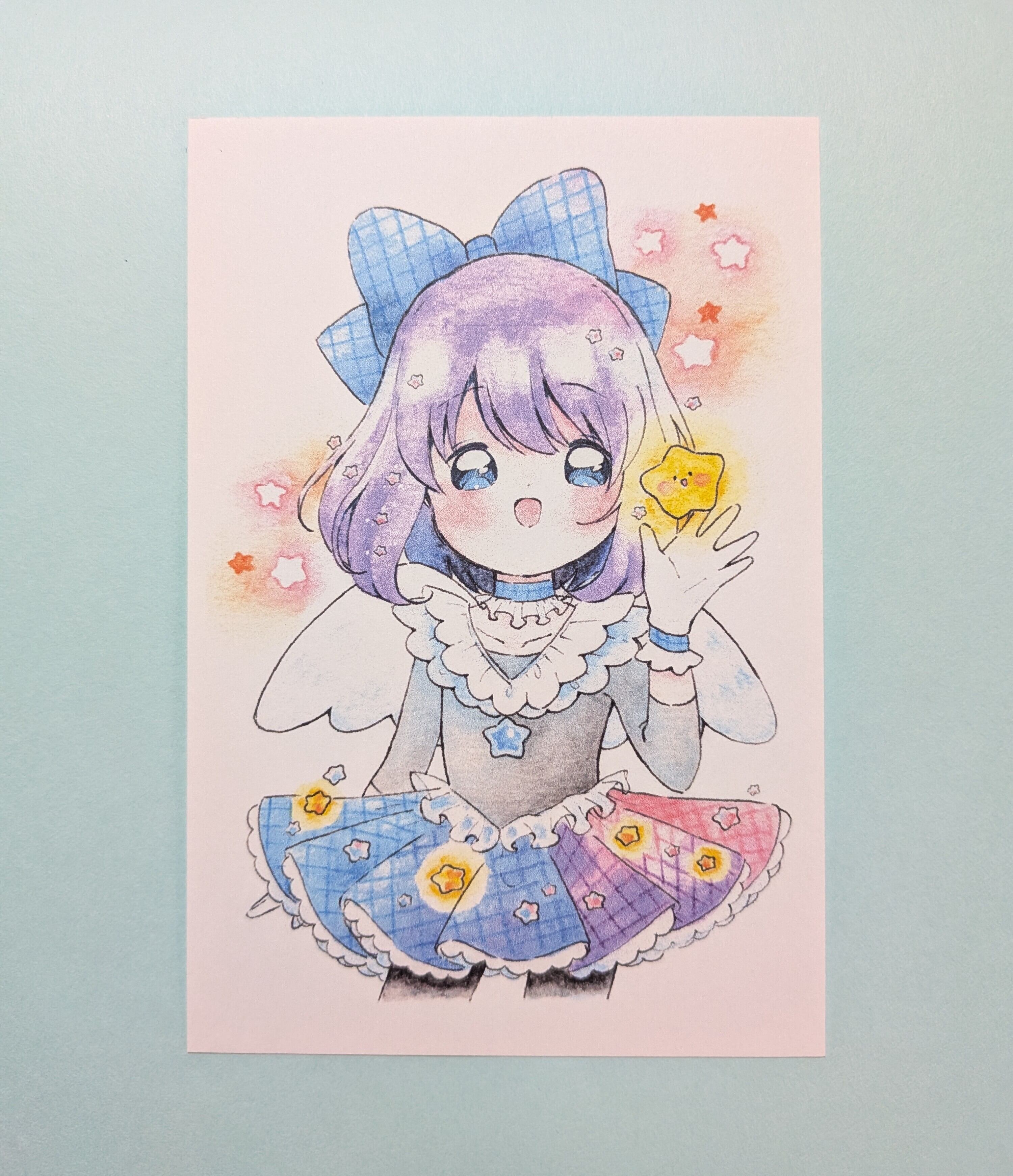 夜空をイメージした衣装を来たライラのイラストのポストカードです。