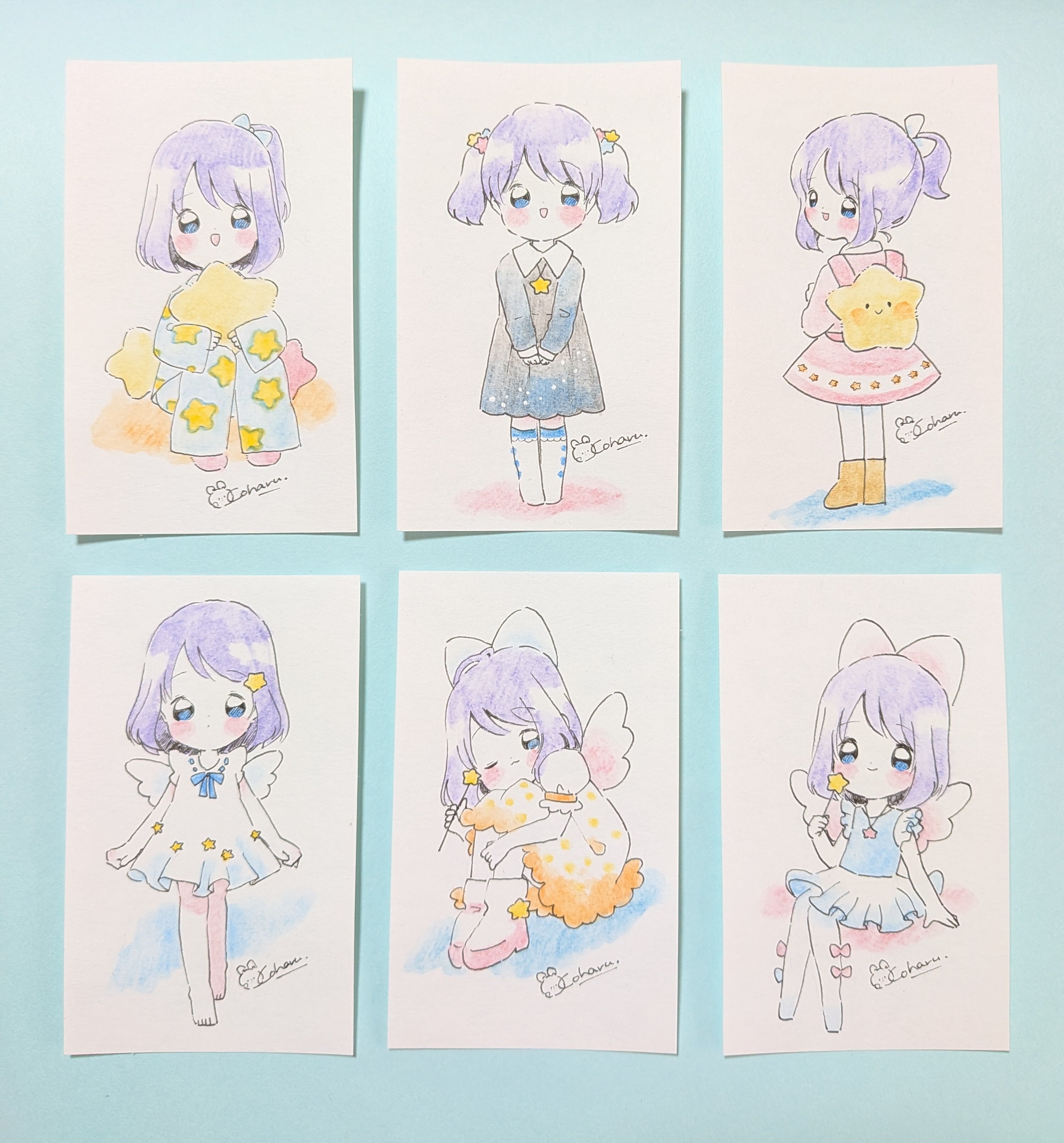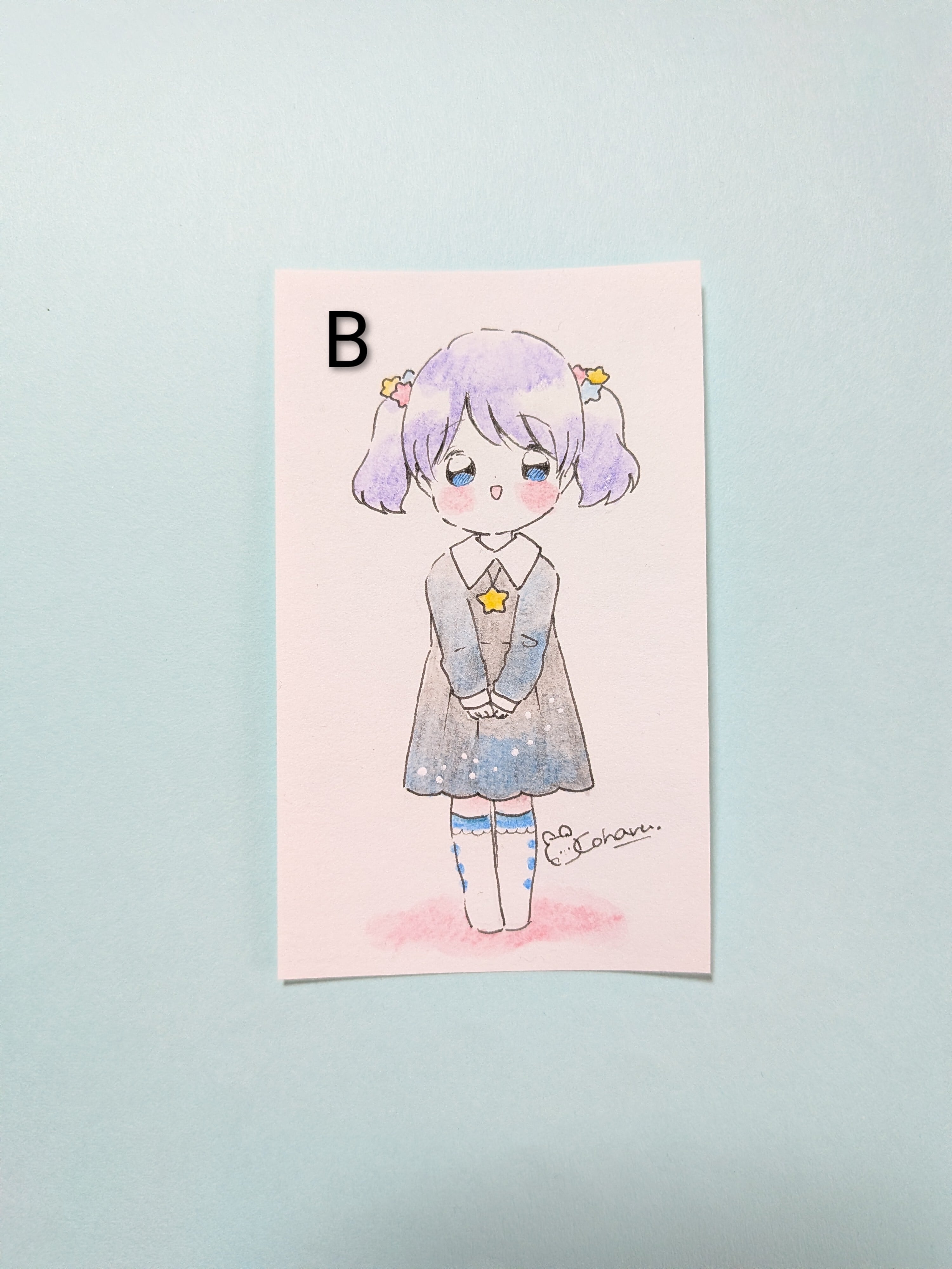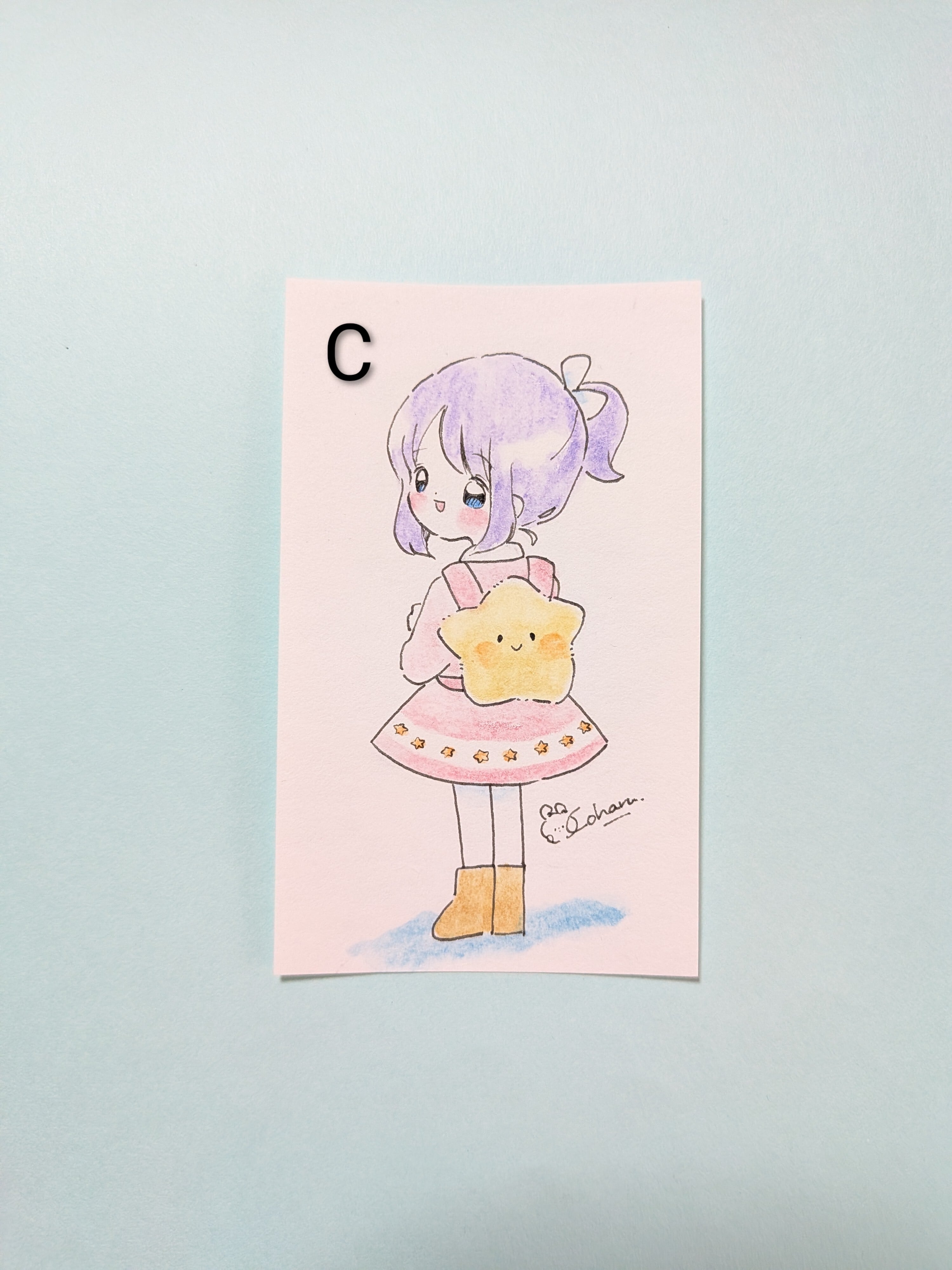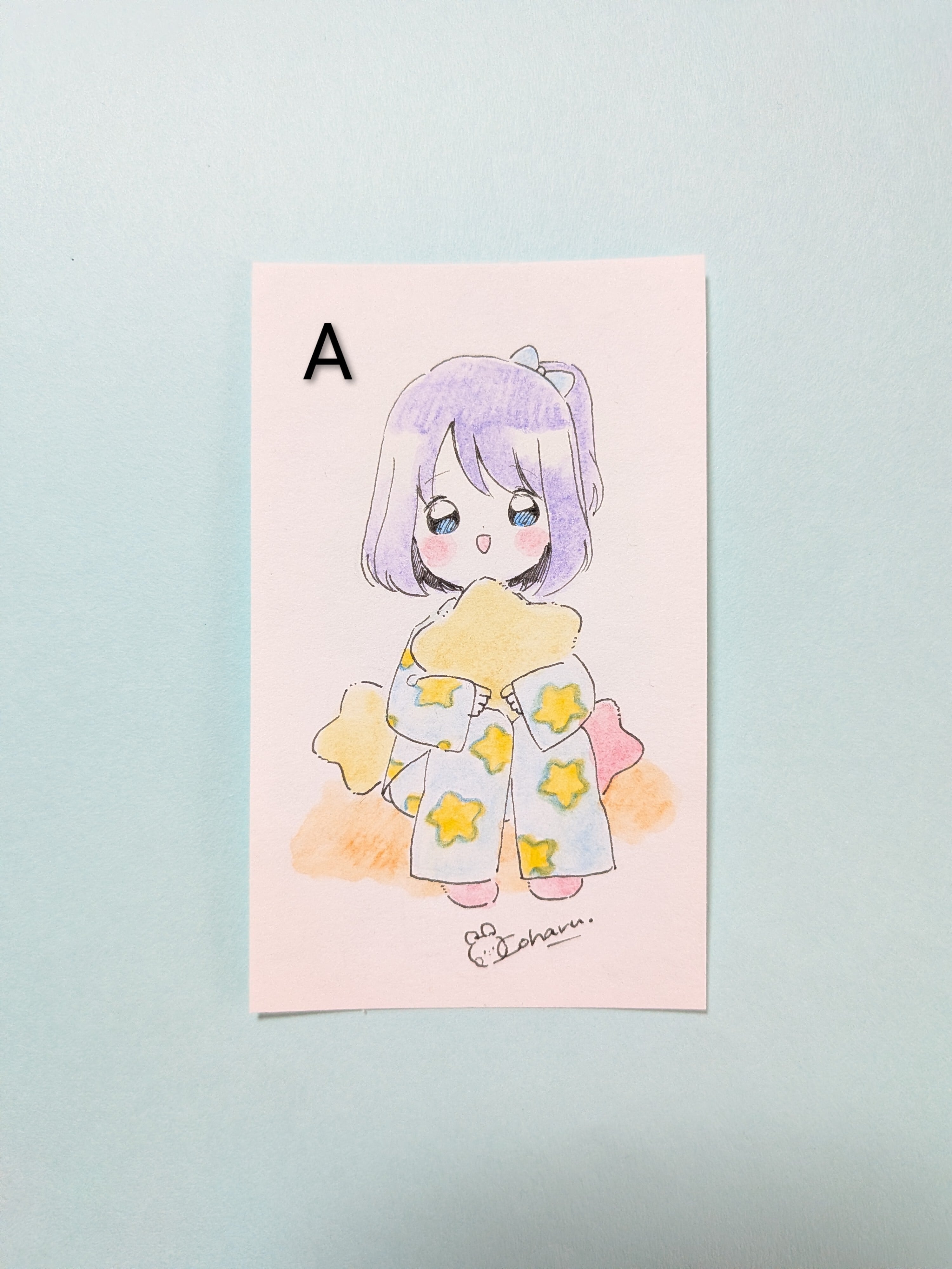 名刺サイズの用紙に描いた原画です。