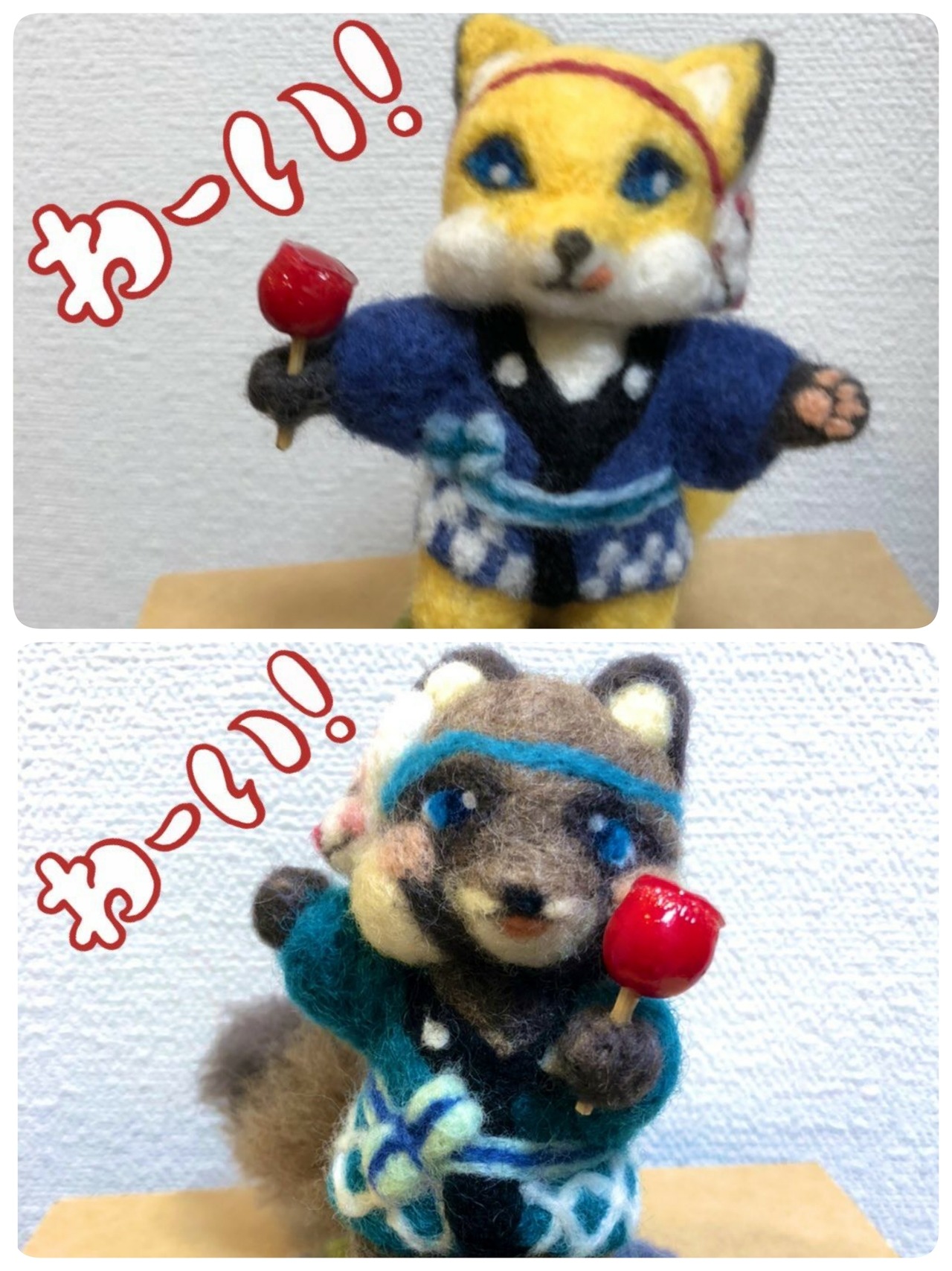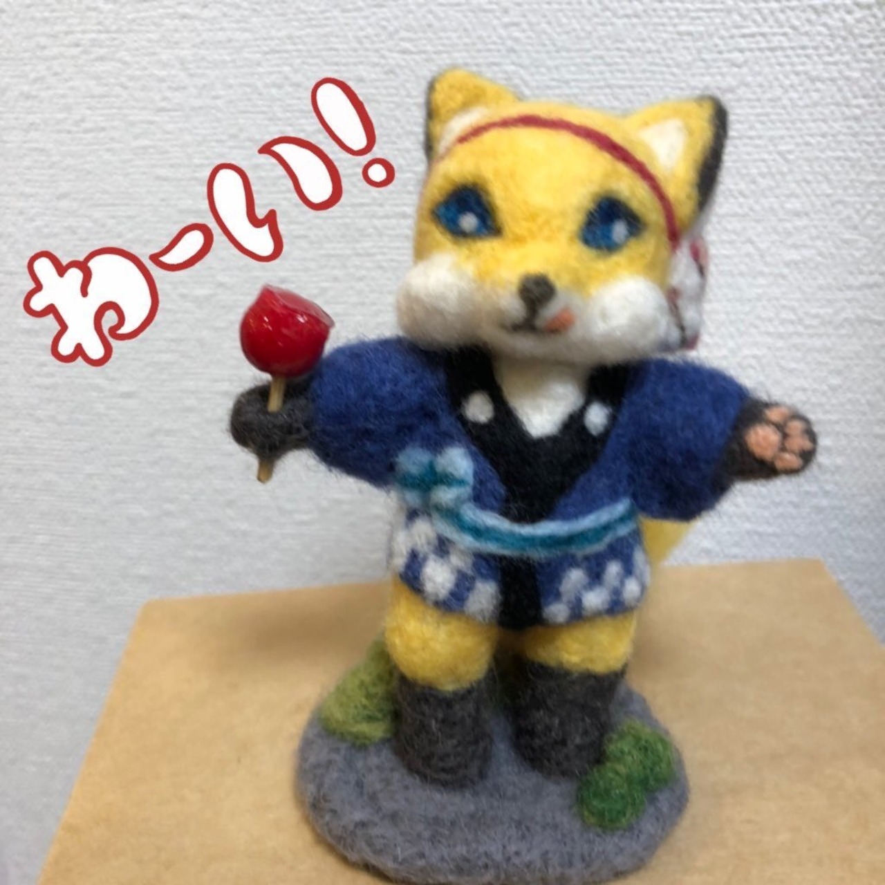 お絵描き狐【羊毛フェルト】YM-01 りんご飴