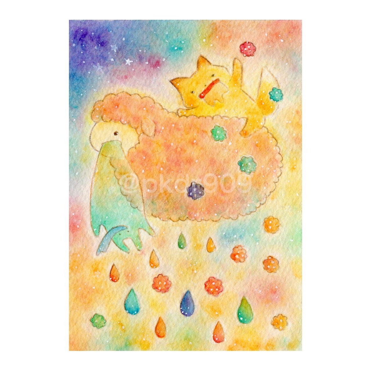 あたたかな気持ちになればいいなーと思い、あったかそうな色の雨など降らせました。