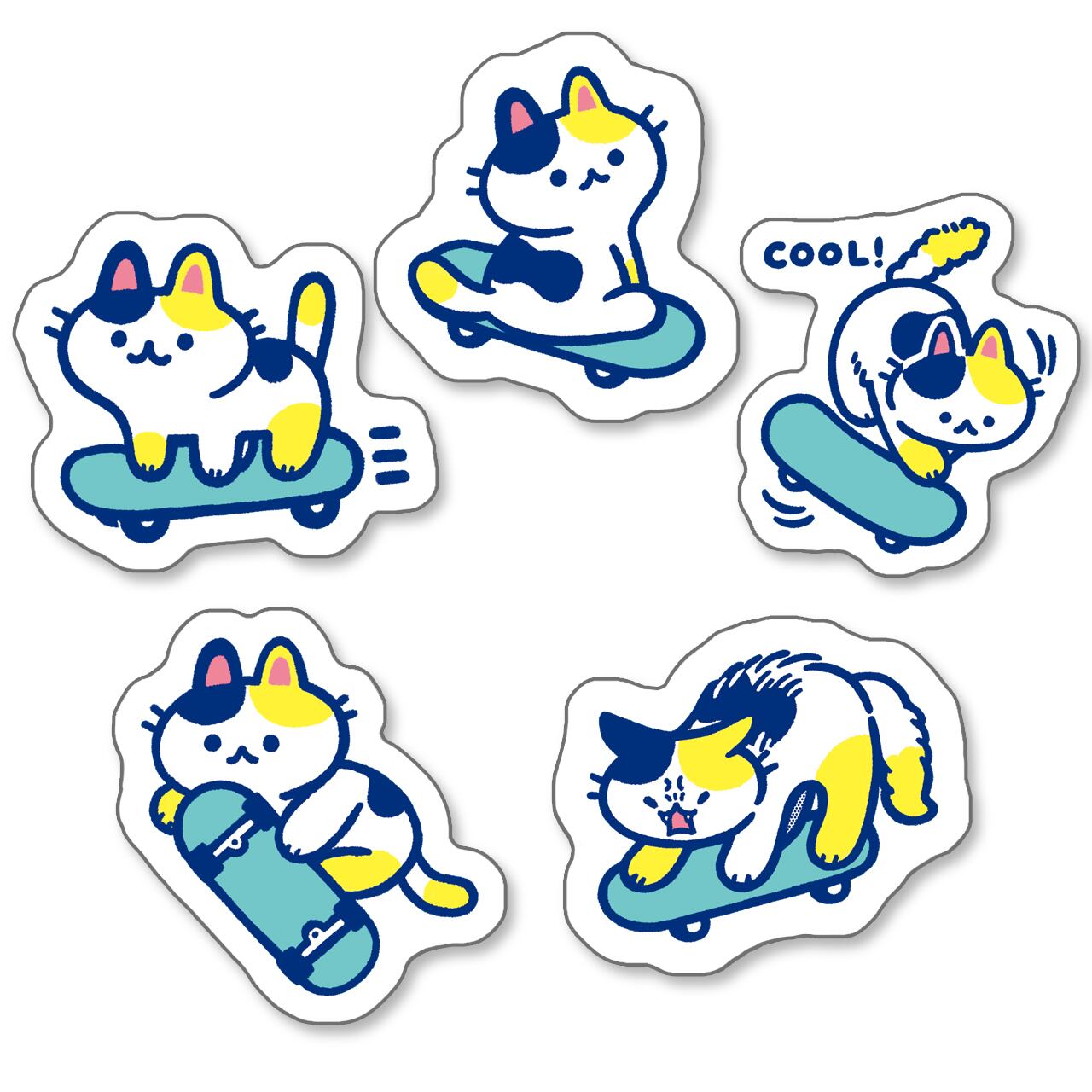 スケボーを楽しむ猫ちゃんのステッカーです。